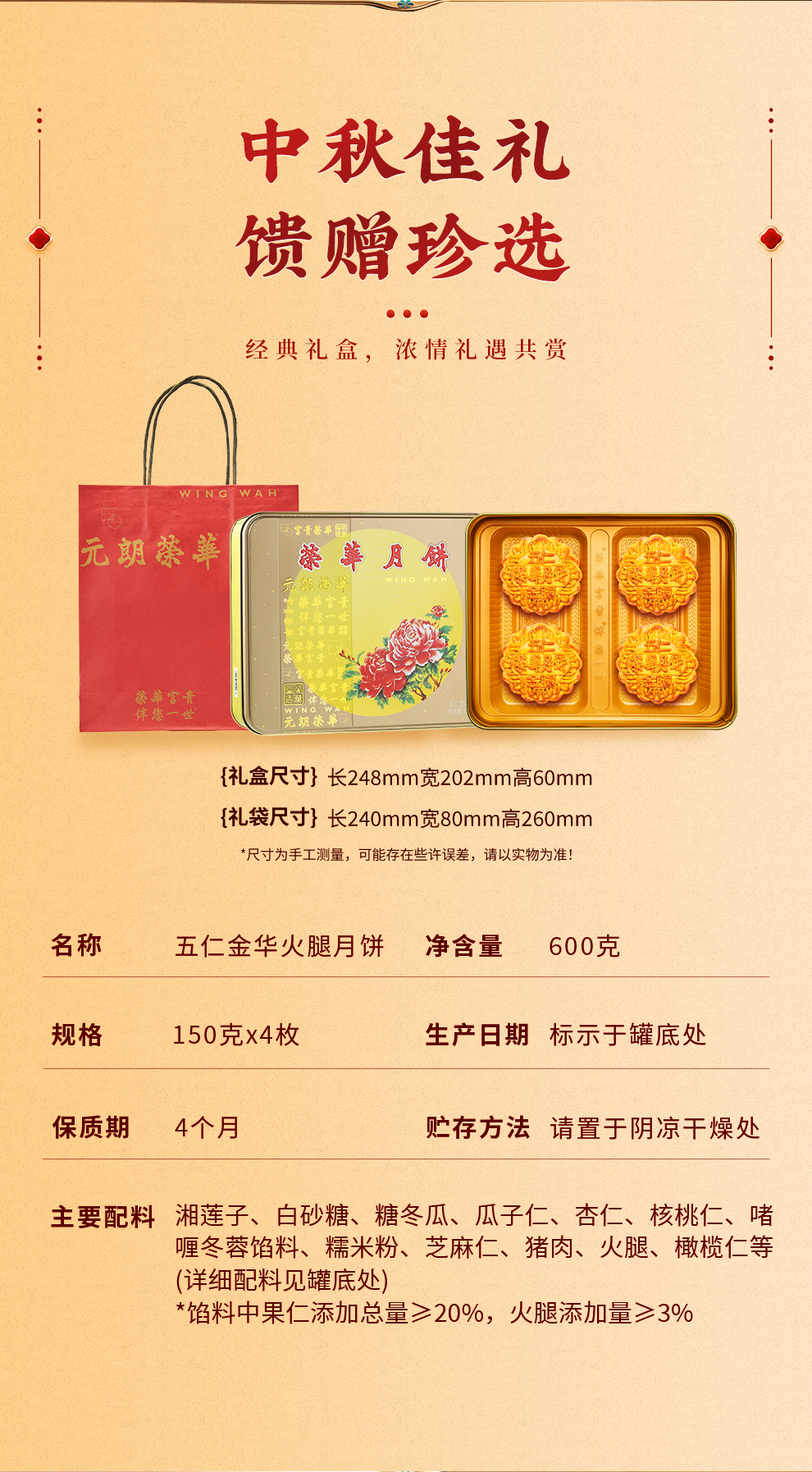 荣华五仁金华火腿月饼600g礼盒