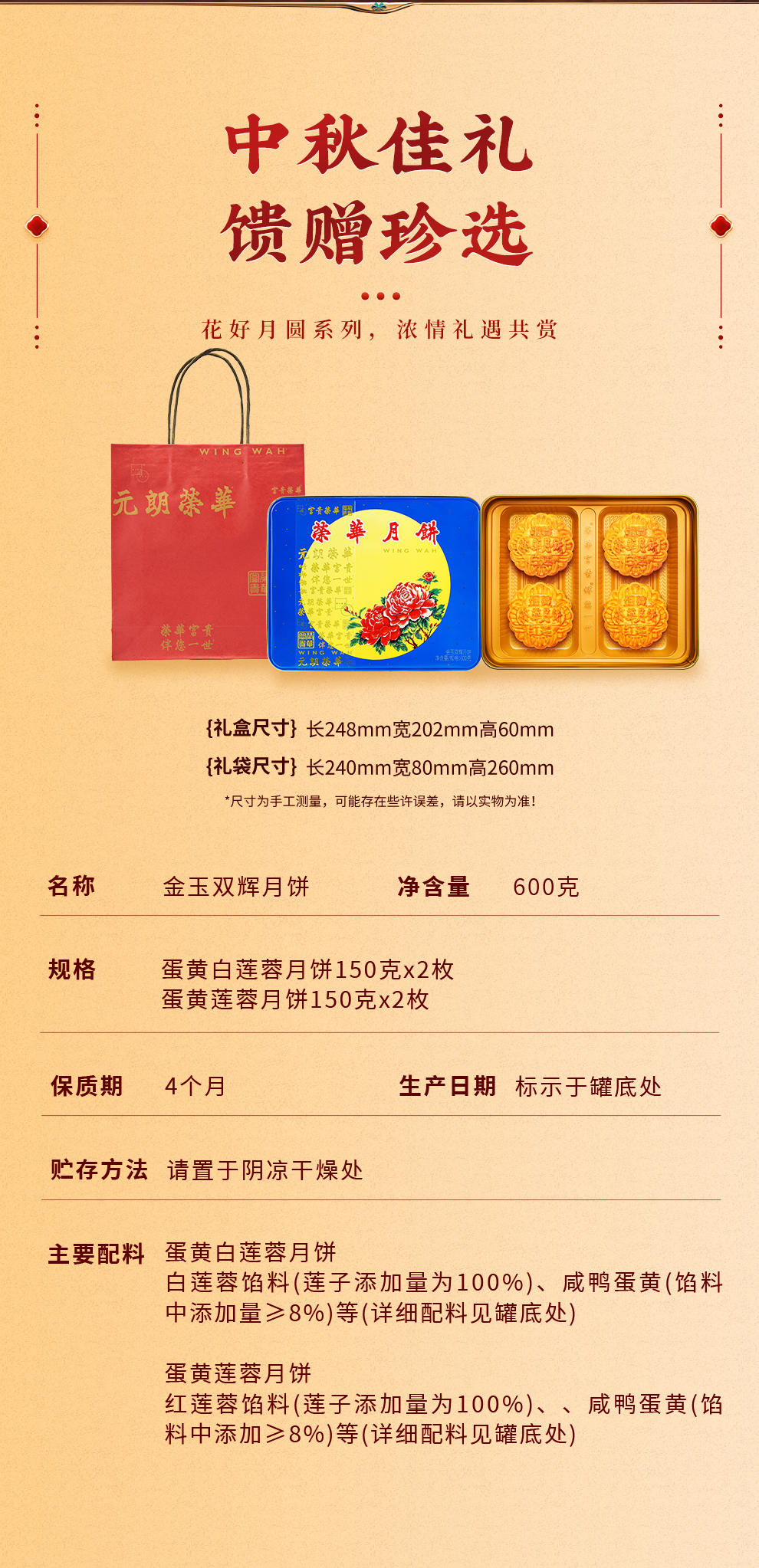荣华金玉双辉月饼600g礼盒