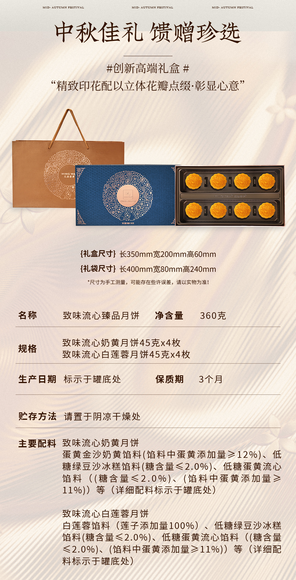 荣华致味流心低糖白莲蓉月饼360g礼盒