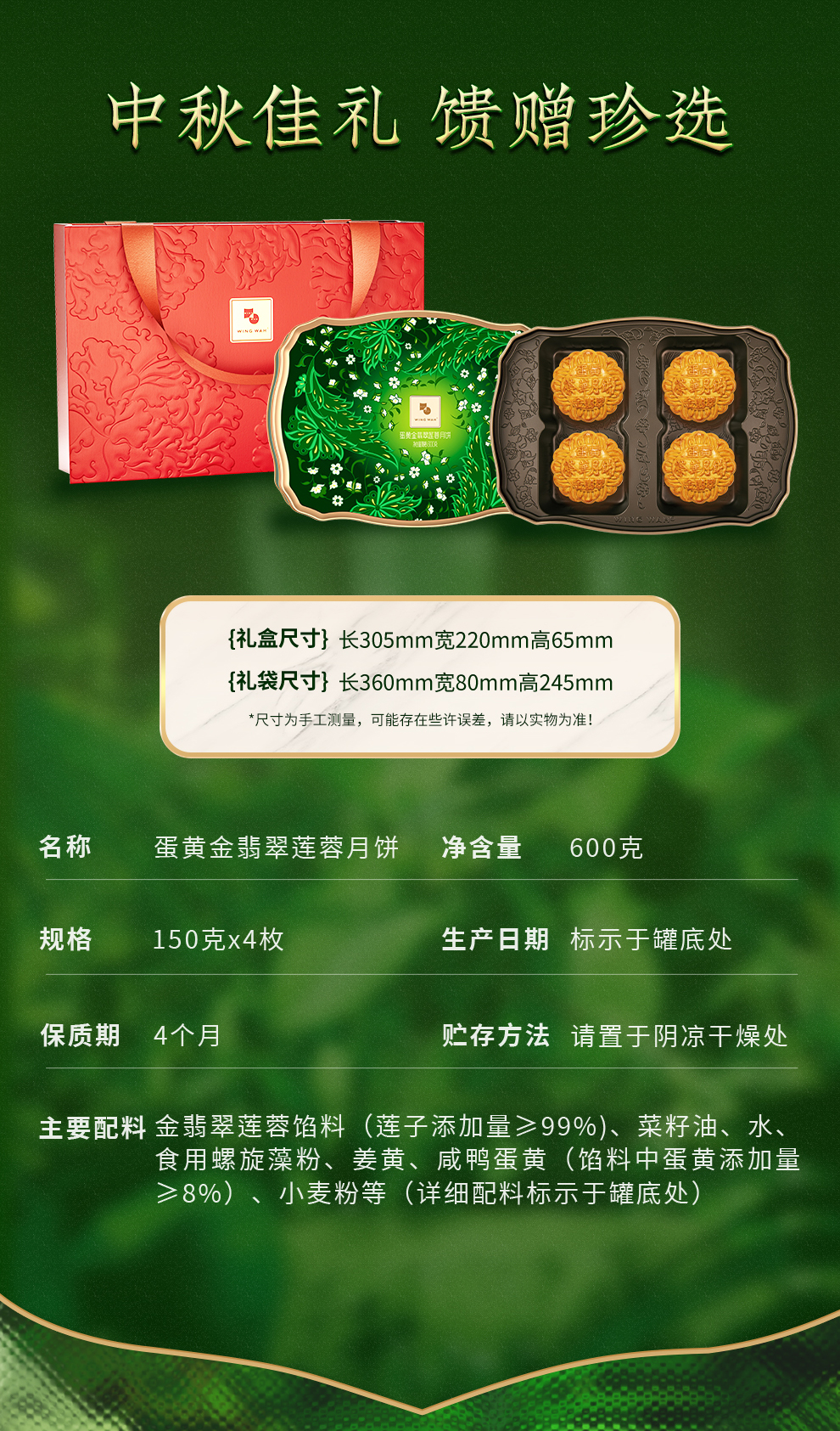 荣华蛋黄金翡翠莲蓉月饼600g礼盒