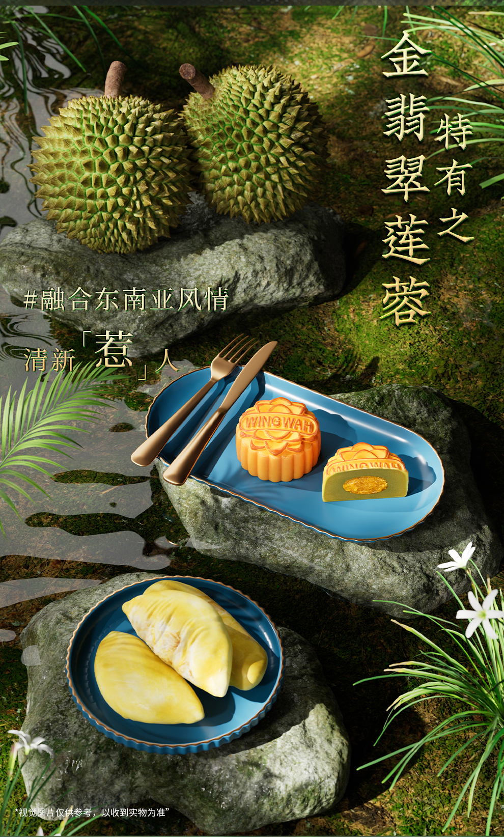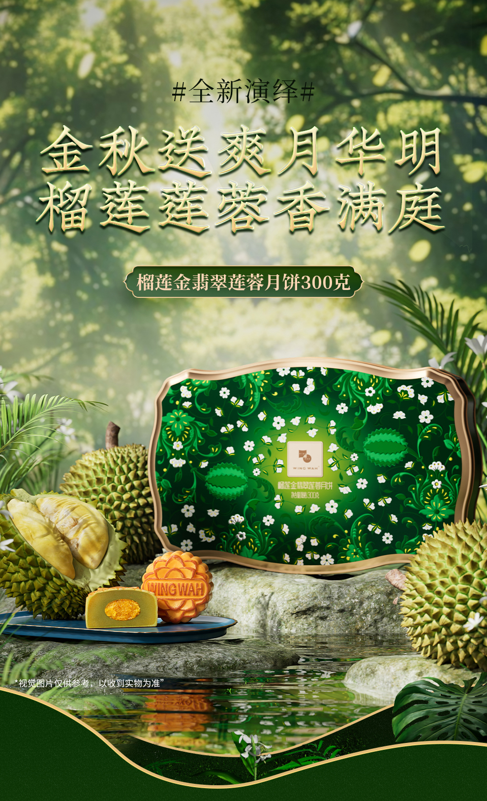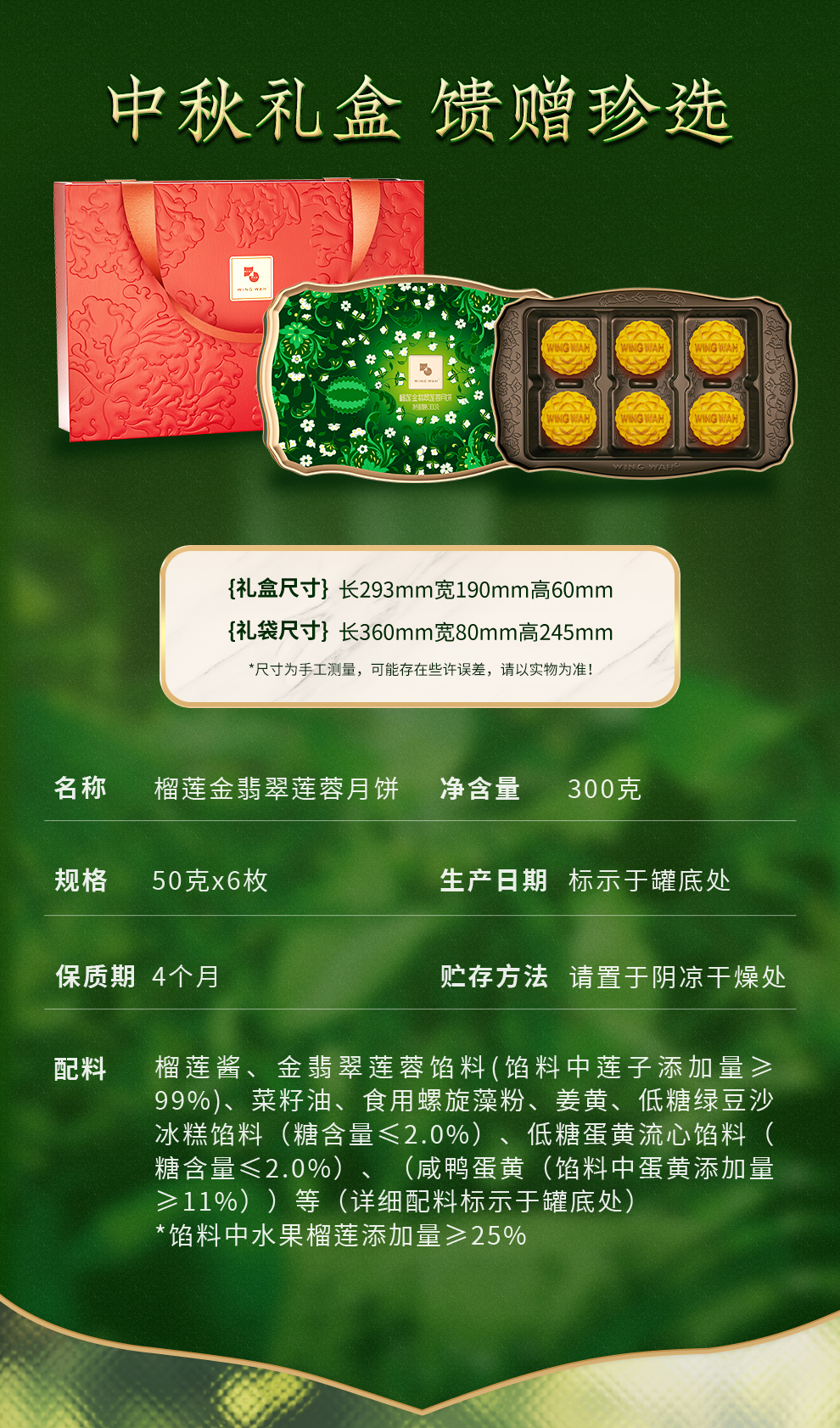 荣华榴莲金翡翠莲蓉月饼300g礼盒