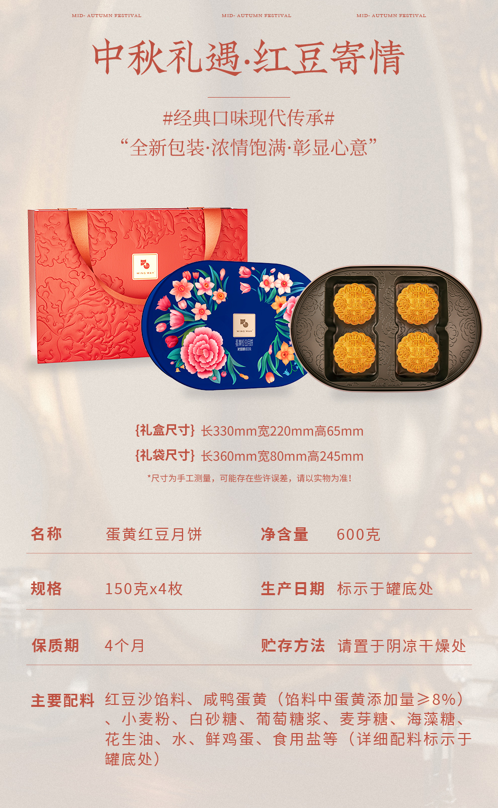 荣华蛋黄陈皮红豆沙月饼480g礼盒