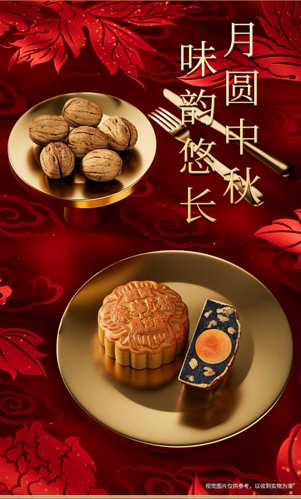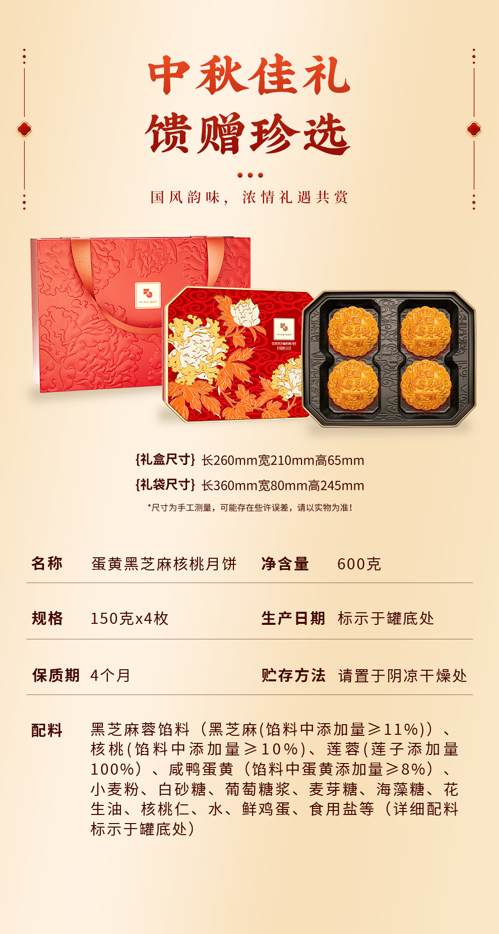 荣华蛋黄黑芝麻核桃月饼600g礼盒