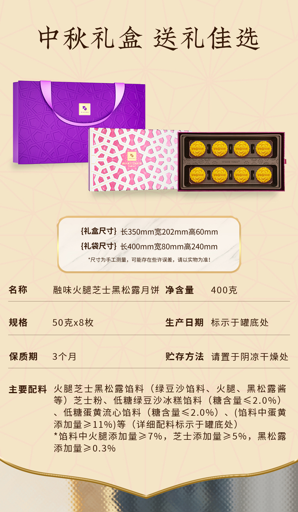 荣华融味火腿芝士黑松露月饼400g礼盒