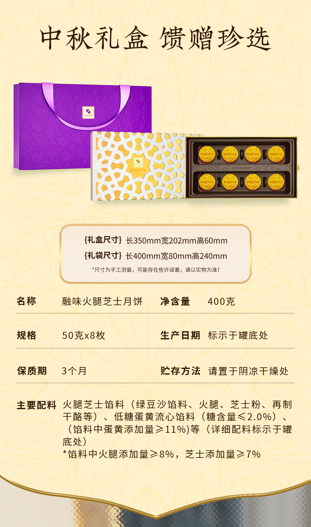 荣华融味火腿芝士黑松露月饼400g礼盒